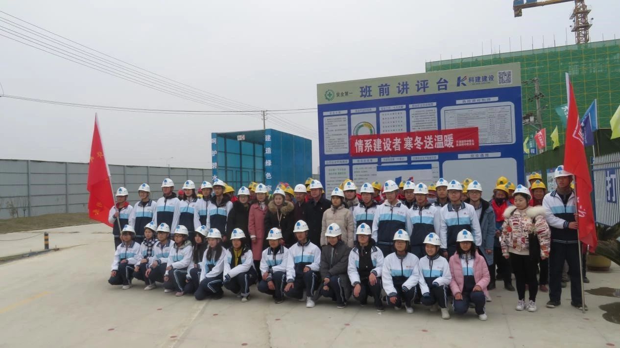 2019年1月27日上午,在春節(jié)來臨之際,息縣教育局黨組成員、息縣華中師范大學附屬息縣高級中學黨委書記兼副校長劉臻、息縣高級中學建設(shè)項目指揮部商務中心主任劉喜峰等人,攜華中師范大學附屬息縣高級中學師生代表深入由河南科建建設(shè)工程有限公司承建的息縣高級中學建設(shè)項目施工現(xiàn)場,對寒冬時節(jié)奮戰(zhàn)在一線的建設(shè)工人進行慰問,并開展一系列送溫暖活動,讓他們感受息縣第二故鄉(xiāng)的溫暖,我公司息縣高級中學建設(shè)項目項目負責人趙傳紅、母彥輝等全程參與了此次活動。